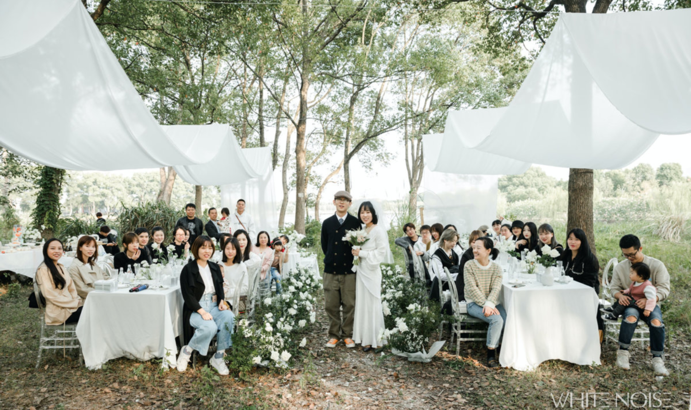 下午开始直接在场地化妆,比来宾还要淡的妆... 朋友们自己动手搭建,新人自制甜品,自己插花,自己搬木板。自己拉布幔... 闻声而来的环卫工人也要递上一支喜烟。 男人们一起爬树,女生们插花,小孩在捉蚂蚱,微风扬起纱幔,一切简单美好。 本来是专业拍其它人干活的摄影师 也搬了几趟梯子,擦干净了几把椅子。 任何摆拍要求都被爽快拒绝,全程纪实无摆拍的一天。 白噪音图片社 [更多…]
